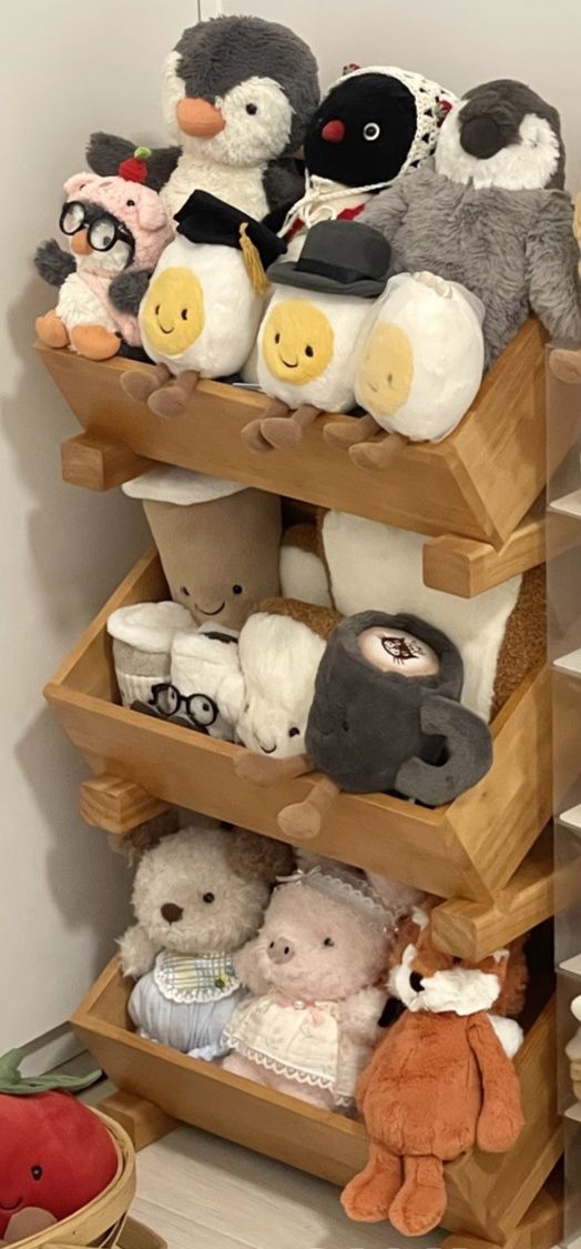 三段構成で奥行きのある設計により、大小さまざまなぬいぐるみ収納に最適です。