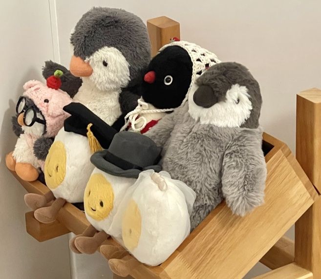 お気に入りのぬいぐるみをかわいく飾れる階段型の棚です。