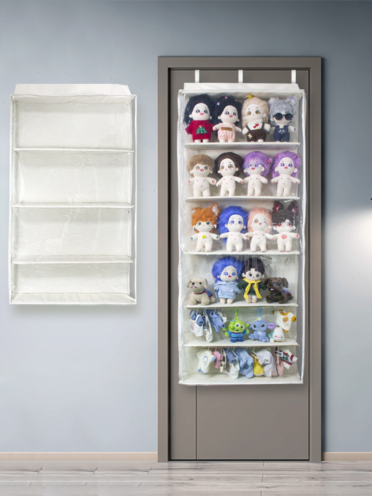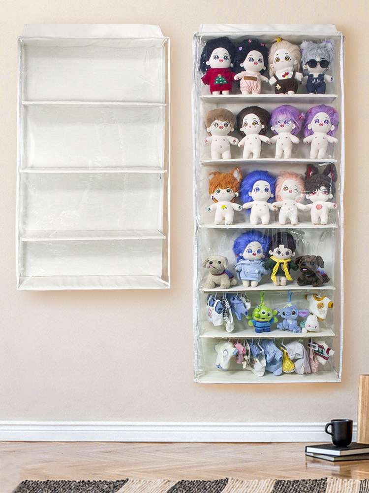 壁に簡単に取り付けられる六段式のぬいぐるみ収納です。 透明な窓付きで大切なぬいぐるみをほこりから守りながら美しくディスプレイできます。 吊り下げタイプなので床の空間を有効活用でき、お部屋をすっきりと整理整頓できます。 各段にたっぷり収納できるので、増え続けるコレクションの整理に最適です。 子供部屋や寝室の壁面を有効活用して、お気に入りのぬいぐるみを見せる収納として楽しめます。