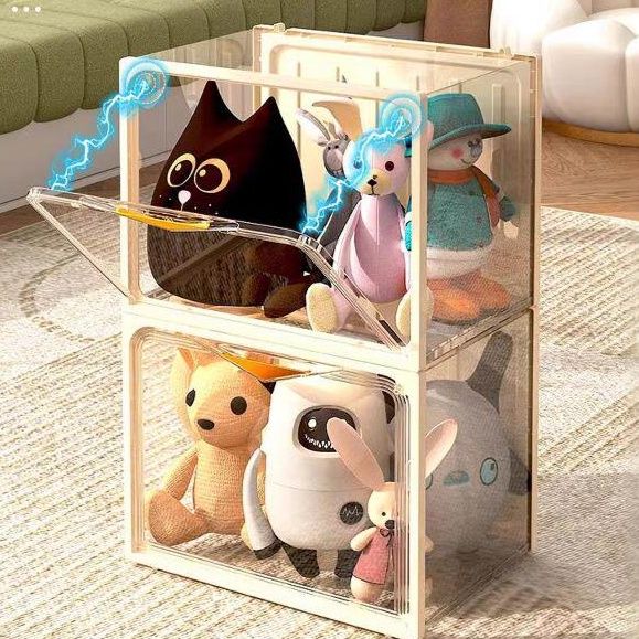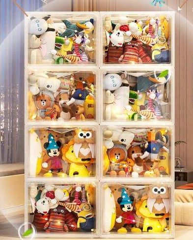 大切なぬいぐるみをおしゃれに飾りながら収納できるケースです。 透明な扉付きで中身が一目で分かり、埃からもしっかり守ります。 積み重ねて自由に組み合わせられるため、コレクションの数に合わせて拡張可能です。 磁石式の開閉扉で出し入れもスムーズに行えます。 ぬいぐるみ収納としてだけでなく、お気に入りの小物やフィギュアの展示にも最適な多機能ケースです。