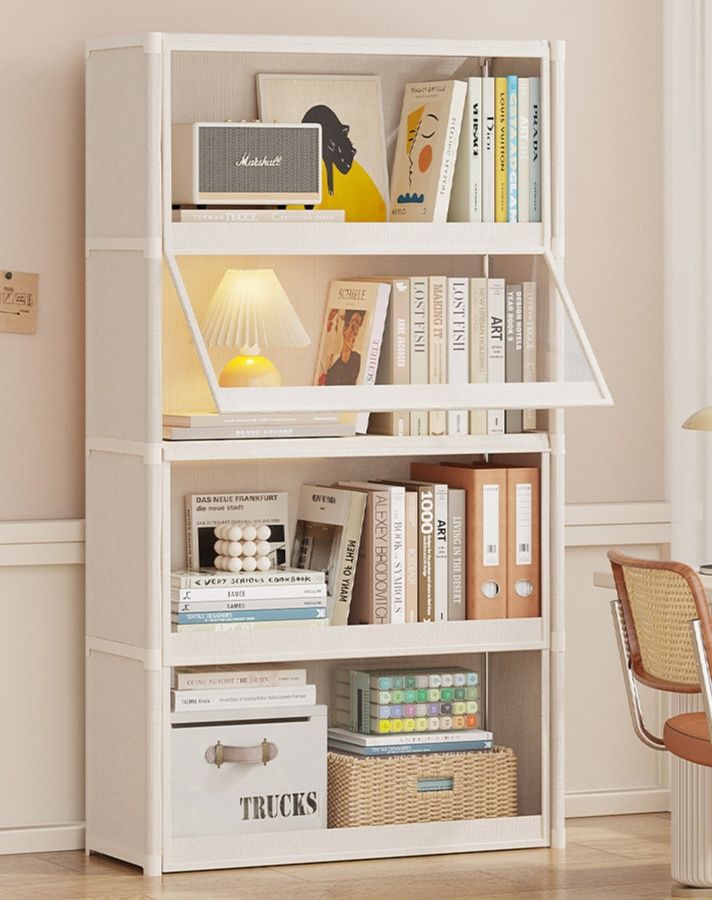 中身が見える透明な扉が付いた四段式の収納棚です。 ぬいぐるみ収納に最適で、お気に入りのコレクションをほこりから守りながらディスプレイできます。 扉は前面に開くタイプで、出し入れもスムーズに行えます。 シンプルなフレームデザインは、子供部屋やリビングなど様々な空間に調和します。 棚板は高さ調節が可能で、大小様々なぬいぐるみをきれいに整理整頓できる便利な一品です。
