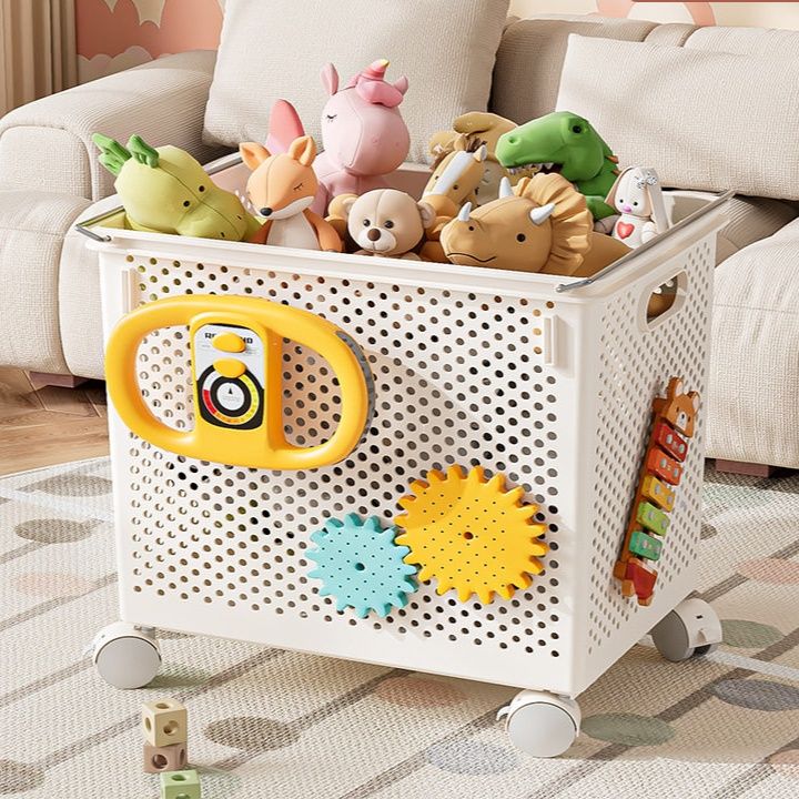 お子様のおもちゃやぬいぐるみ収納に最適な移動式ケースです。 通気性の良いパンチング加工で清潔に保管でき、キャスター付きで移動も楽々できます。 大容量サイズでたくさんのぬいぐるみやおもちゃをまとめて収納可能です。 側面の取っ手付きで持ち運びにも便利で、子供部屋やリビングの整理整頓に活躍します。 丈夫な素材で長くお使いいただけるぬいぐるみ収納ケースです。
